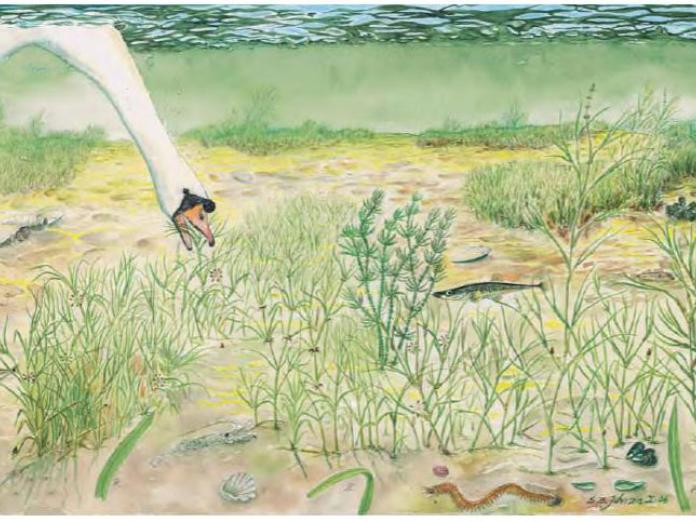 På de följande två illustrationerna kan du se exempel på vegetation. Den färglagda illustrationen ger dig en överblick. På den svartvita illustrationen finns det nummer. Numren hänvisar till arterna beskrivna i textfältet ovanför illustrationen.